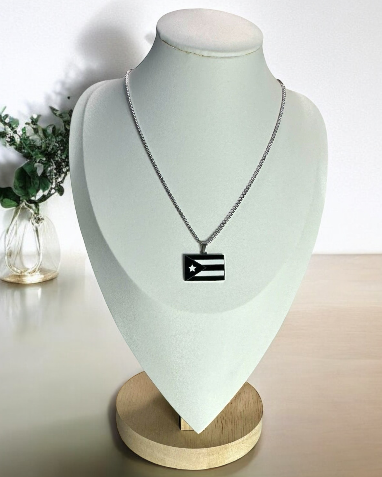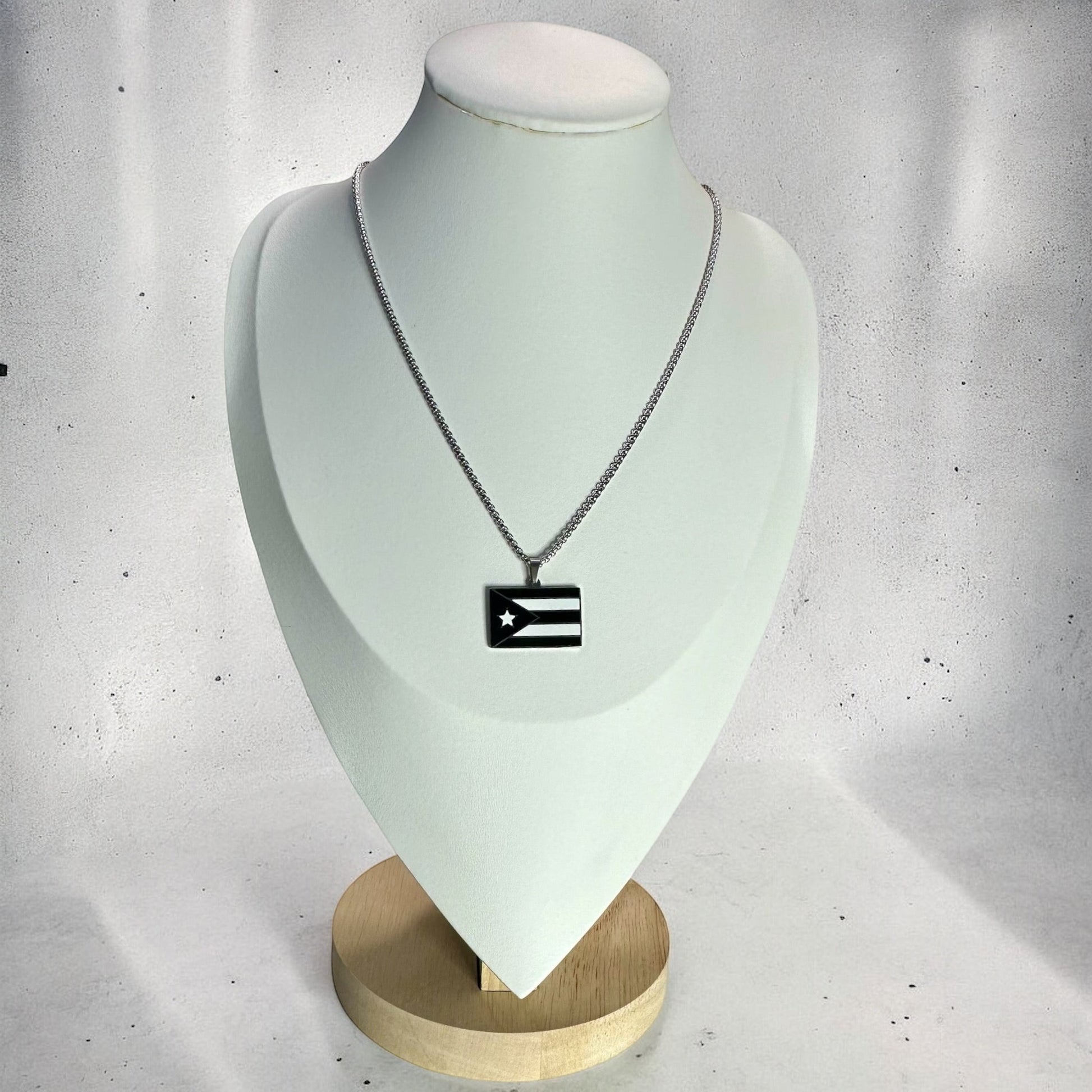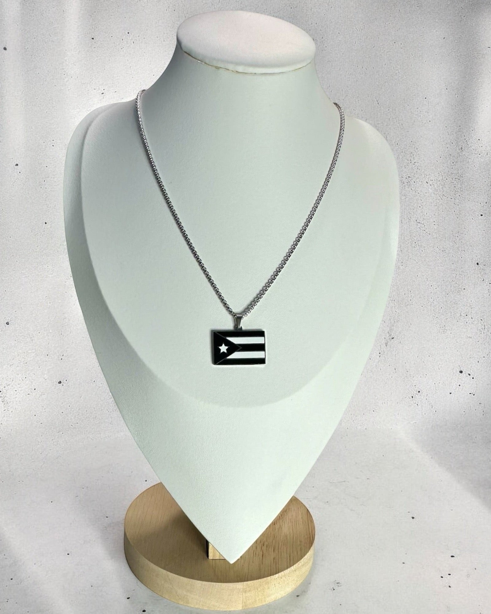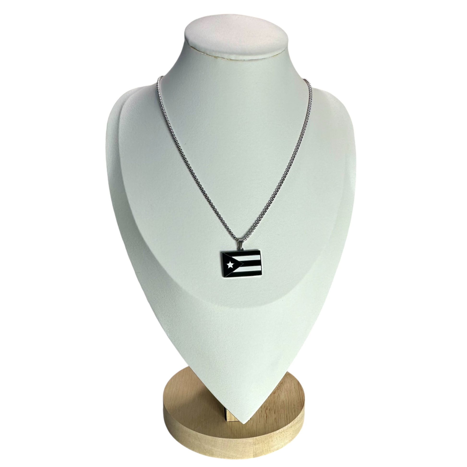 Bandera de PR Rectangular Negra/Blanca Plateada