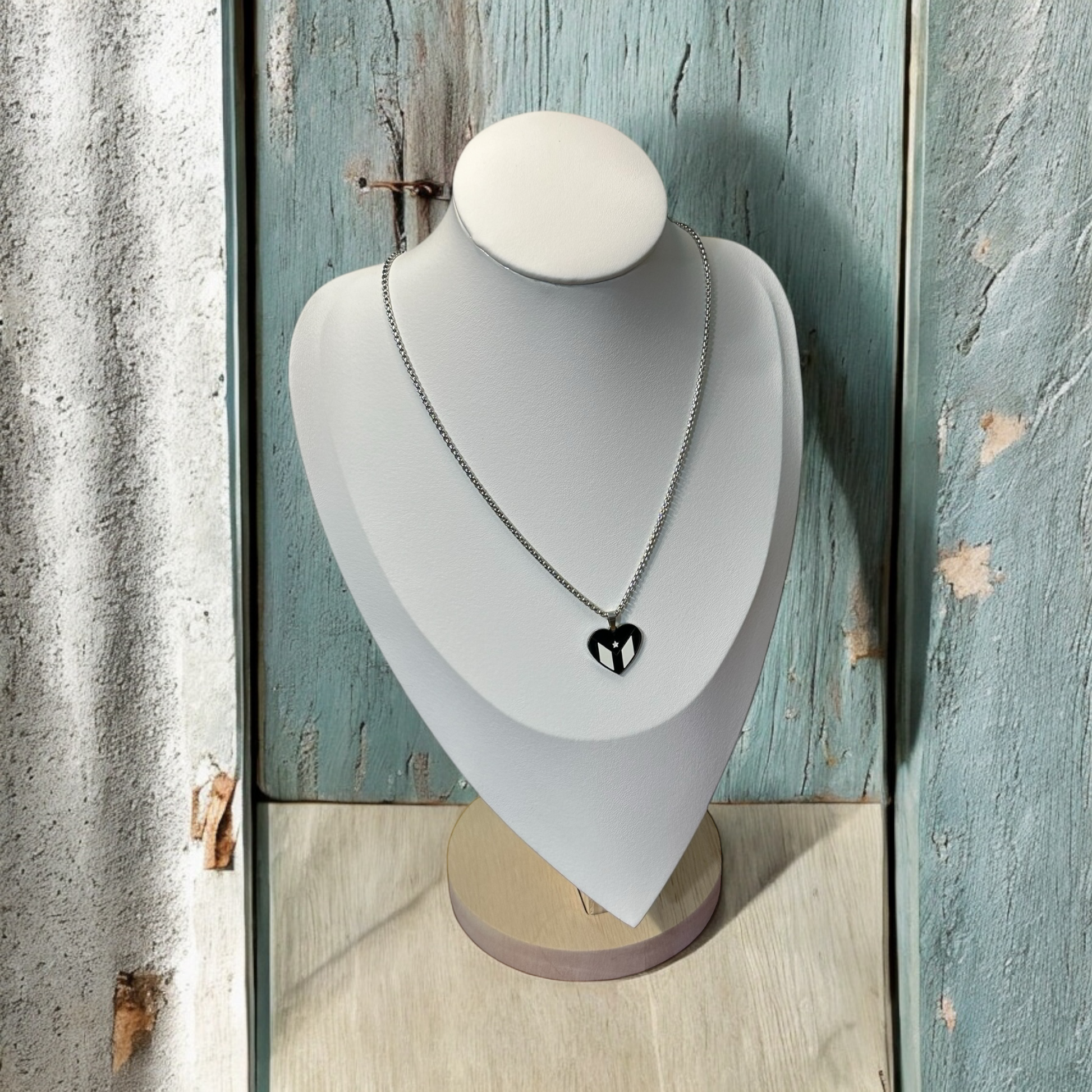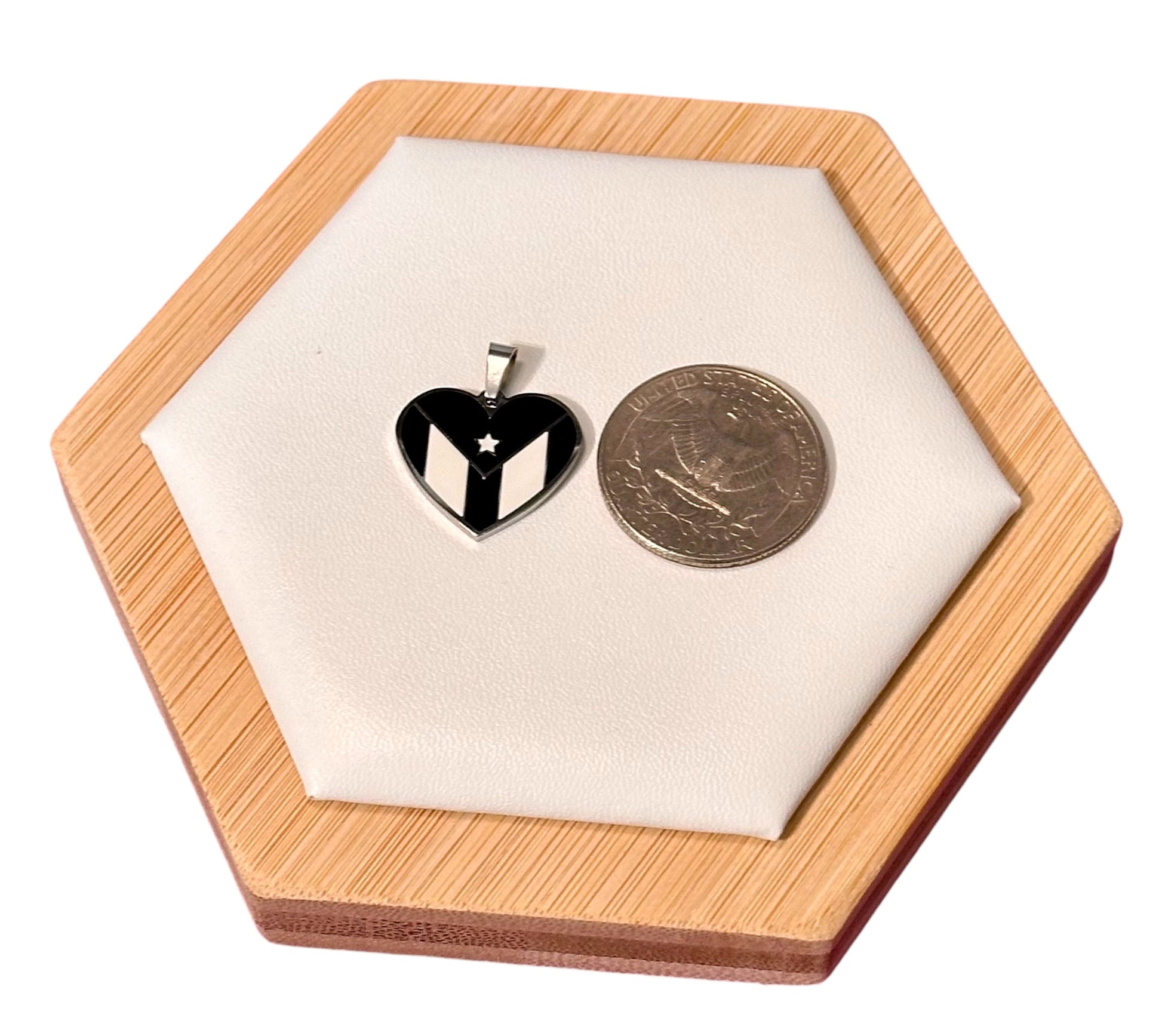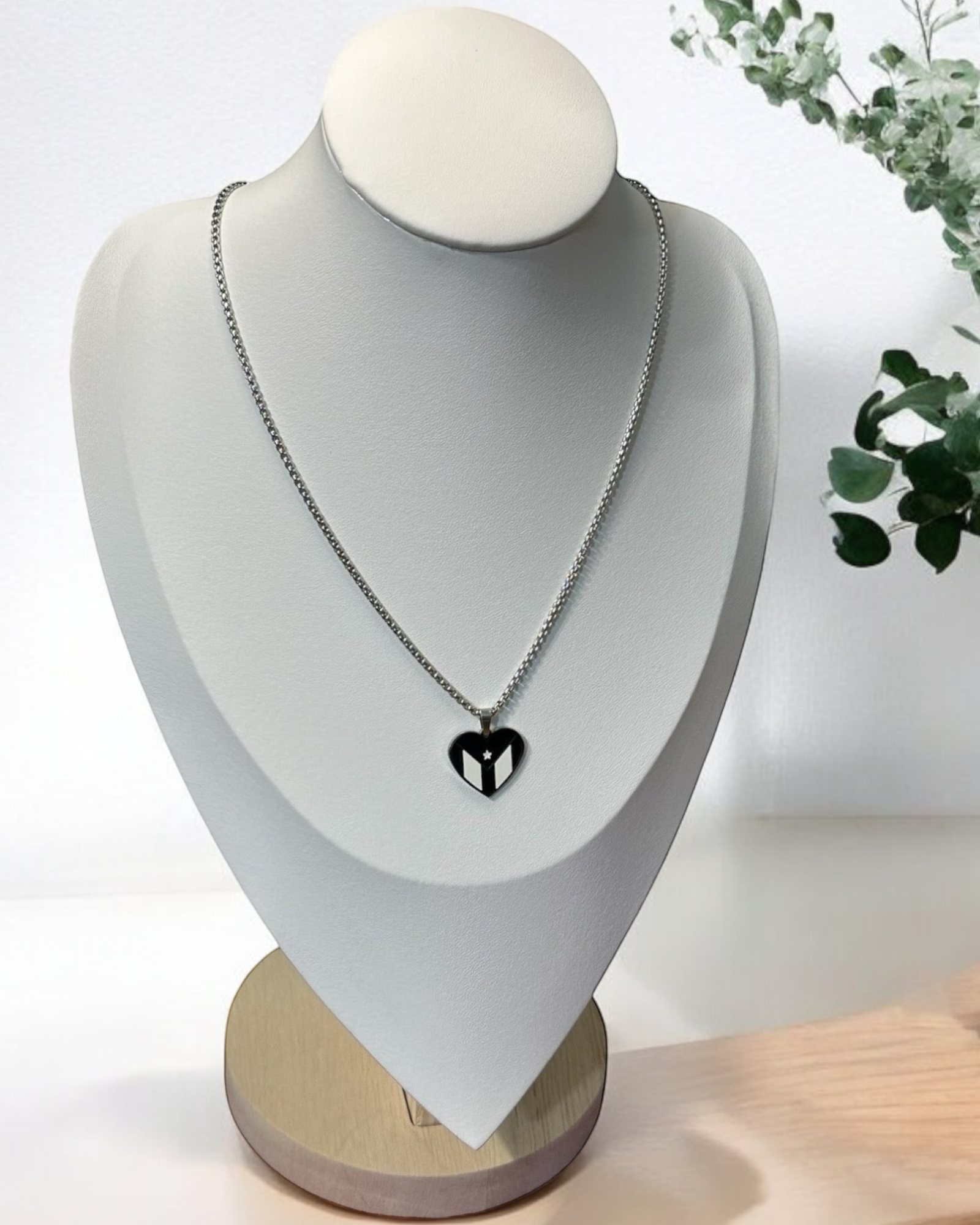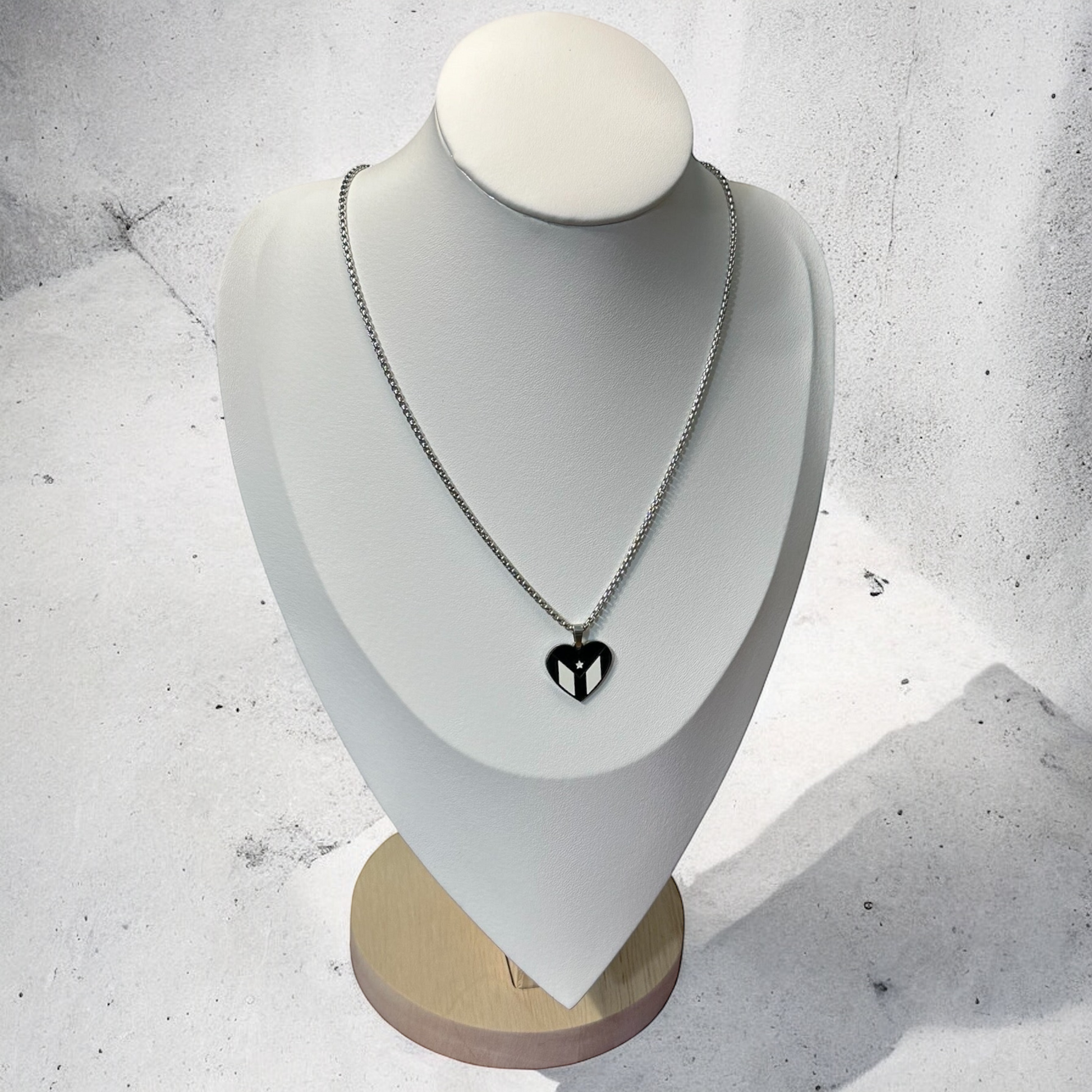 Bandera Corazón Blanca/Negra en Plateado