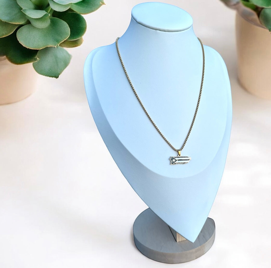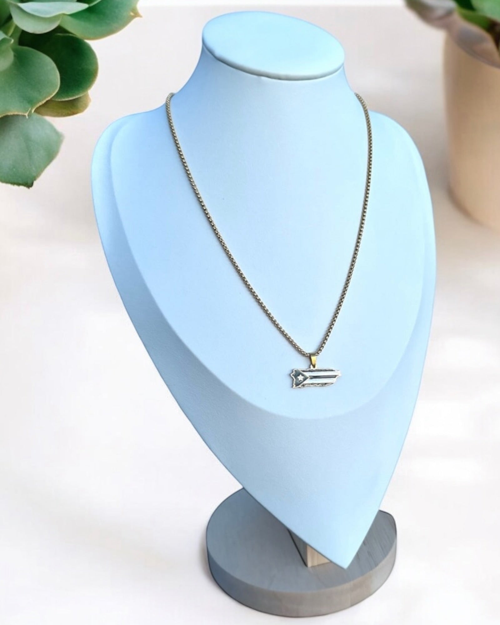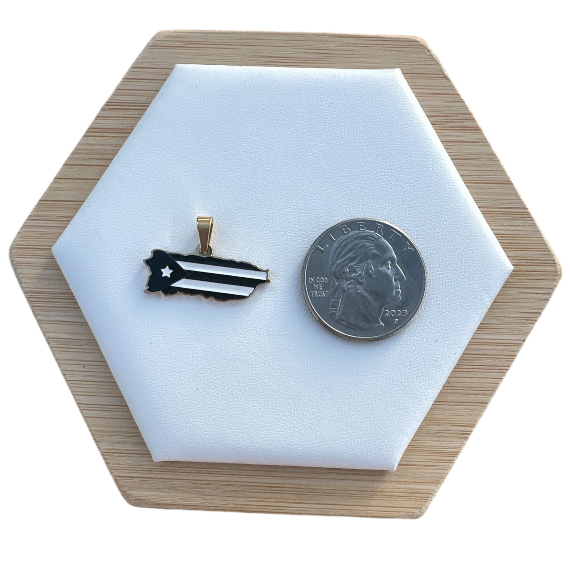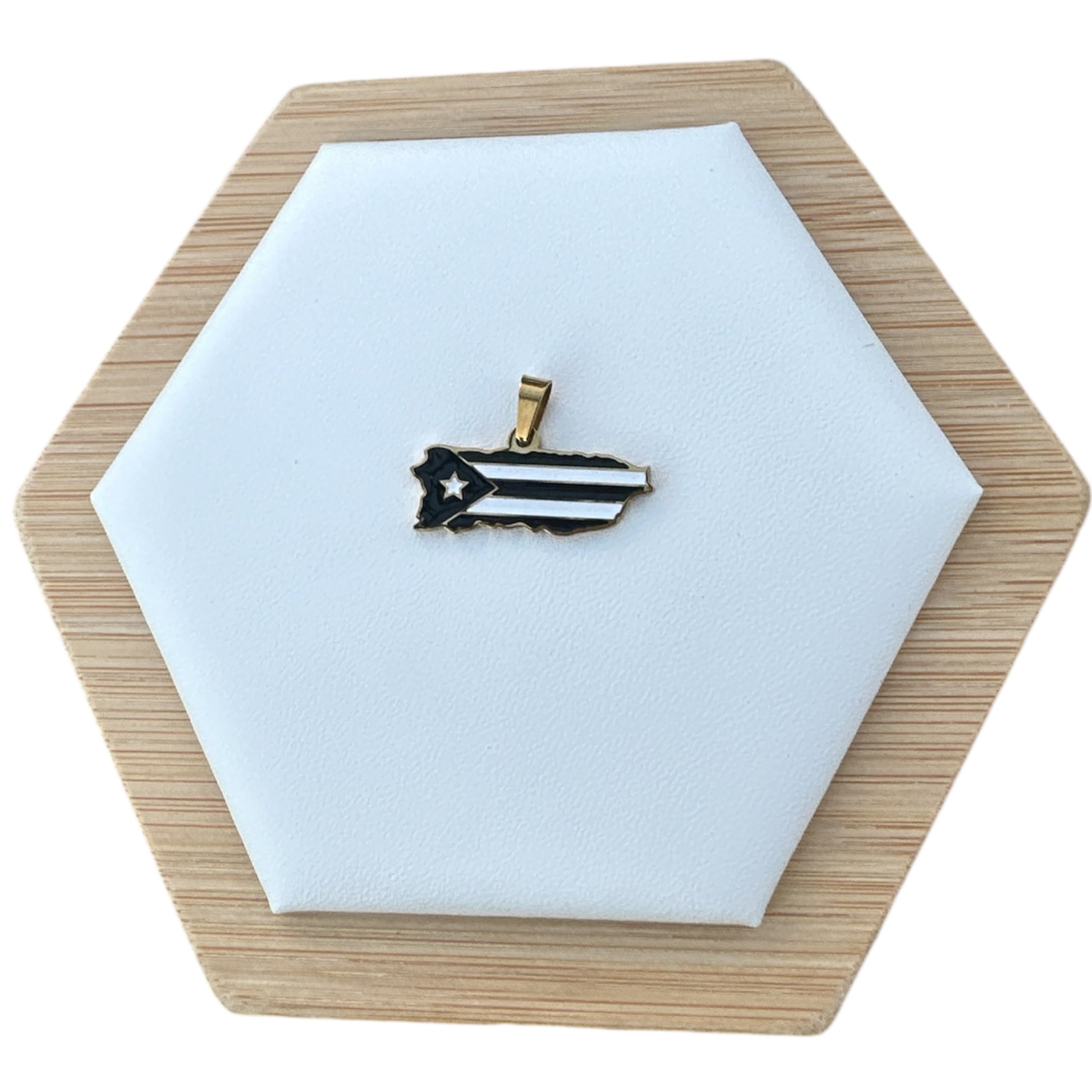 Charm: Mapa de PR Blanco/Negro/Dorada