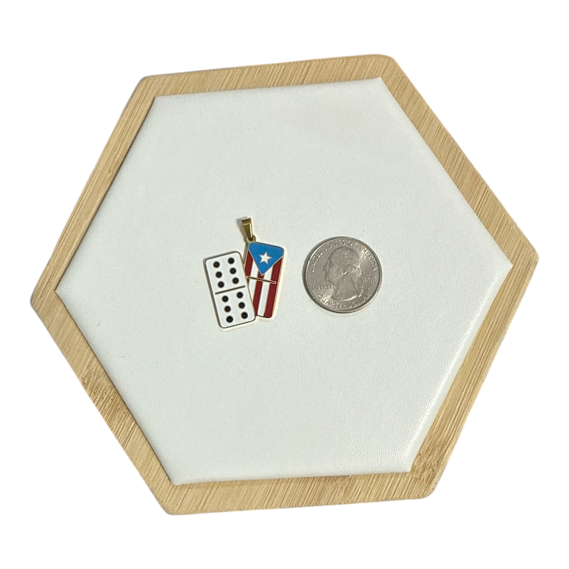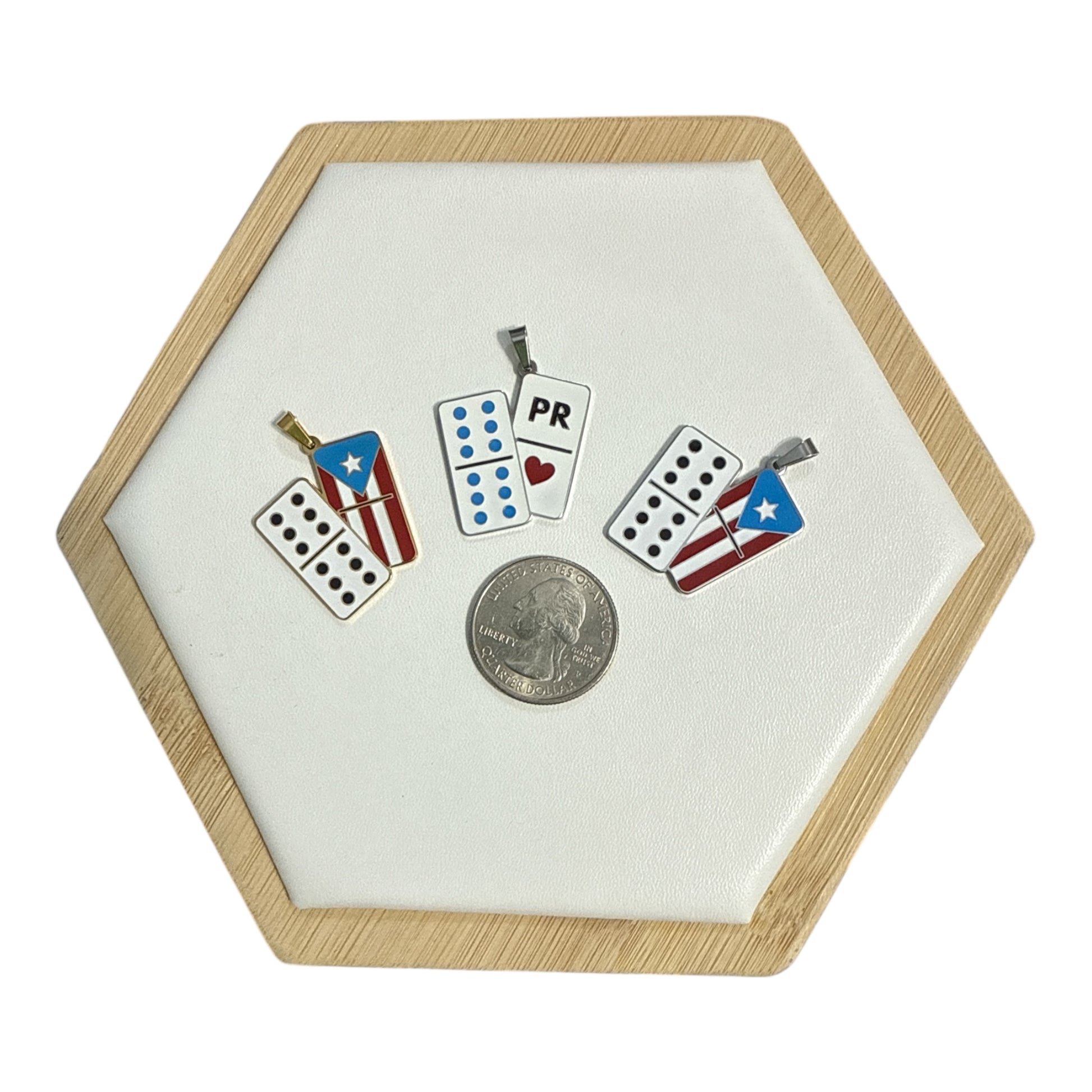 COLLAR FICHA DE DOMINOS BANDERA DE PR EN PLATEADO