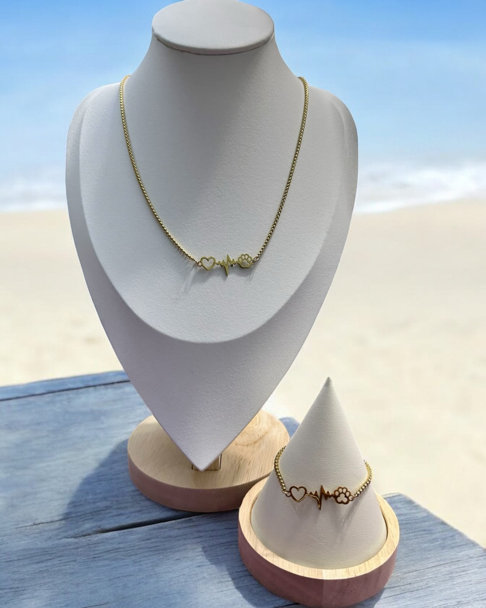 Set Mi Corazón Late por mi Mascota en Dorada (Collar y Pulsera)