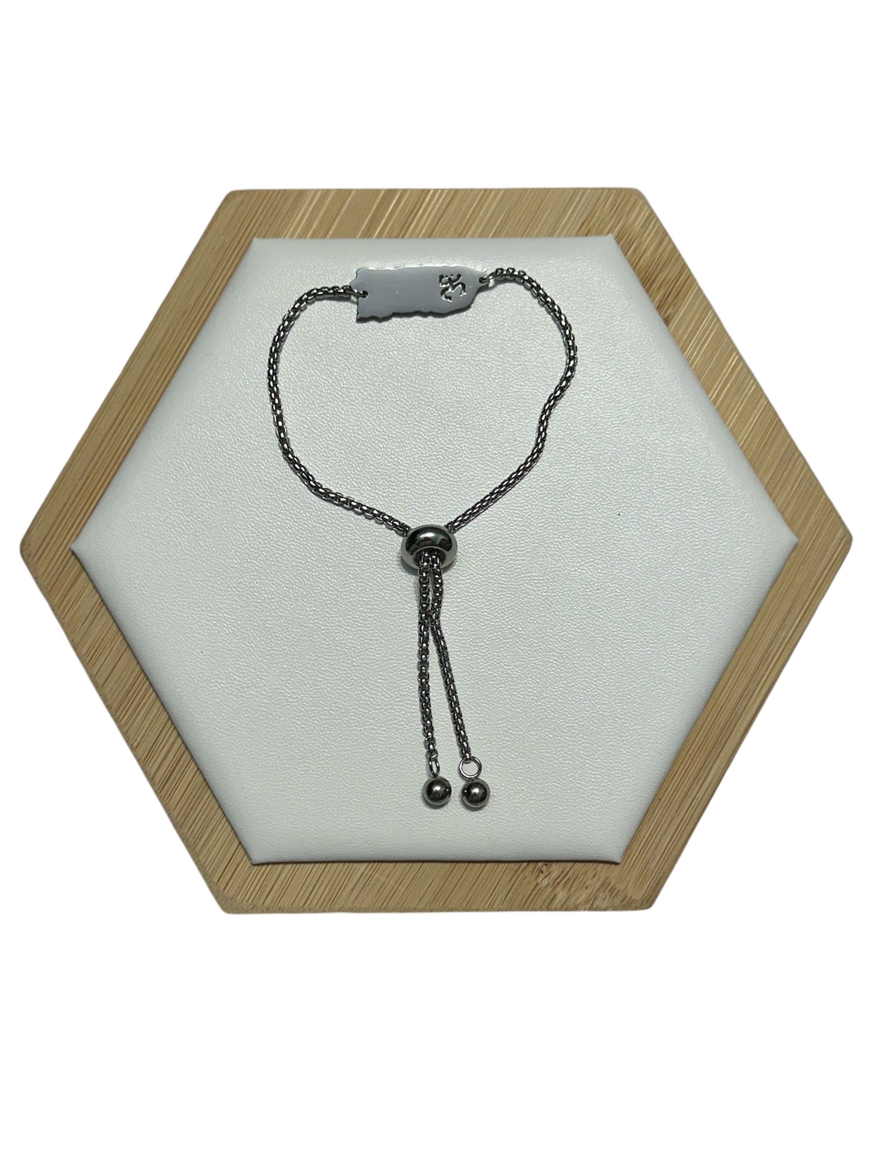 Pulsera Mapa de PR Coqui Taino Plateado