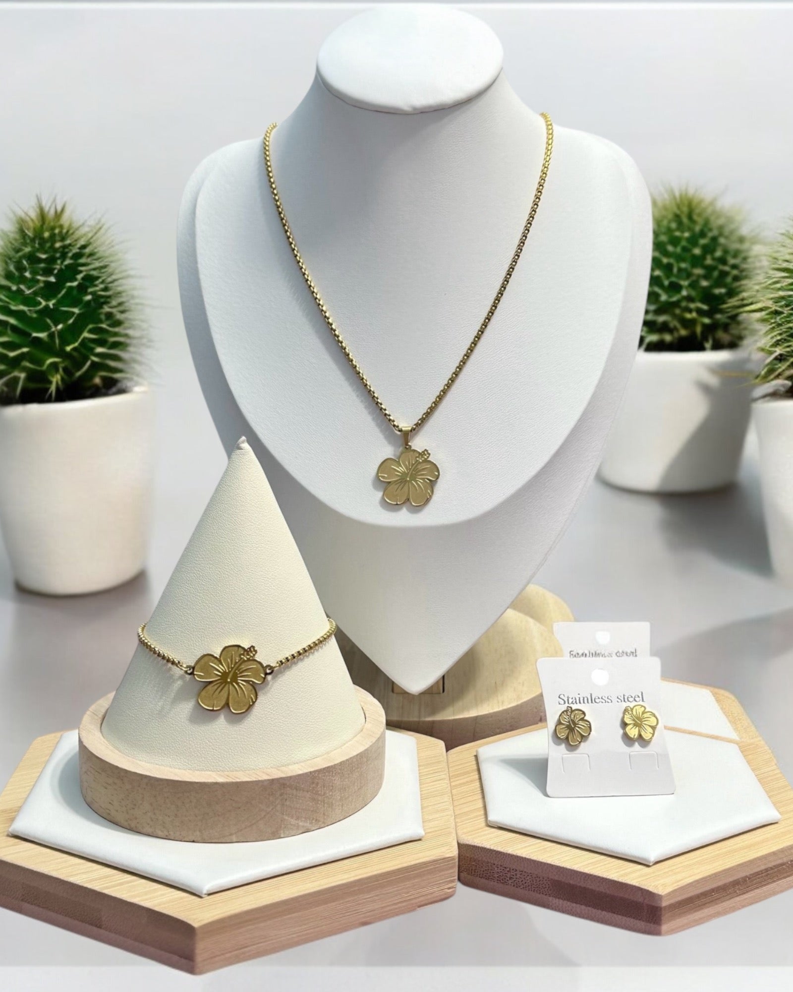 Set Flor de Maga en Dorado (Collar, Pulsera y Aretes)
