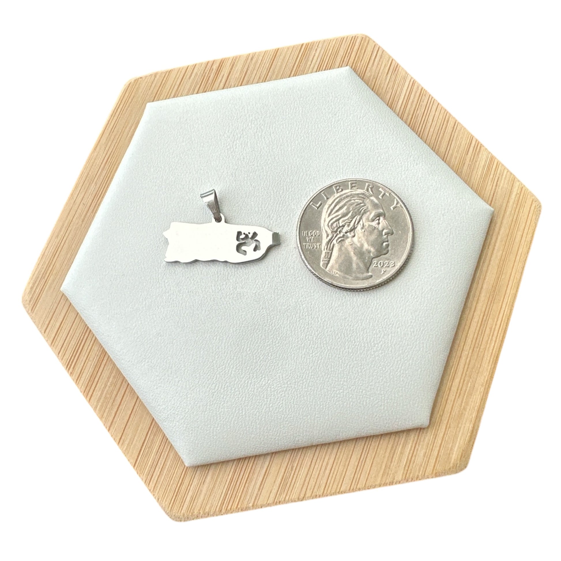 Set que incluye una Cadena con Charm del Mapa de Puerto Rico Plateado. Además contiene una Pulsera Ajustable con el mismo charm. Incluye además unas Pantallas en combinación. Todas las Piezas son Stainless Steel 316. Las Cadenas varian en tamaños.